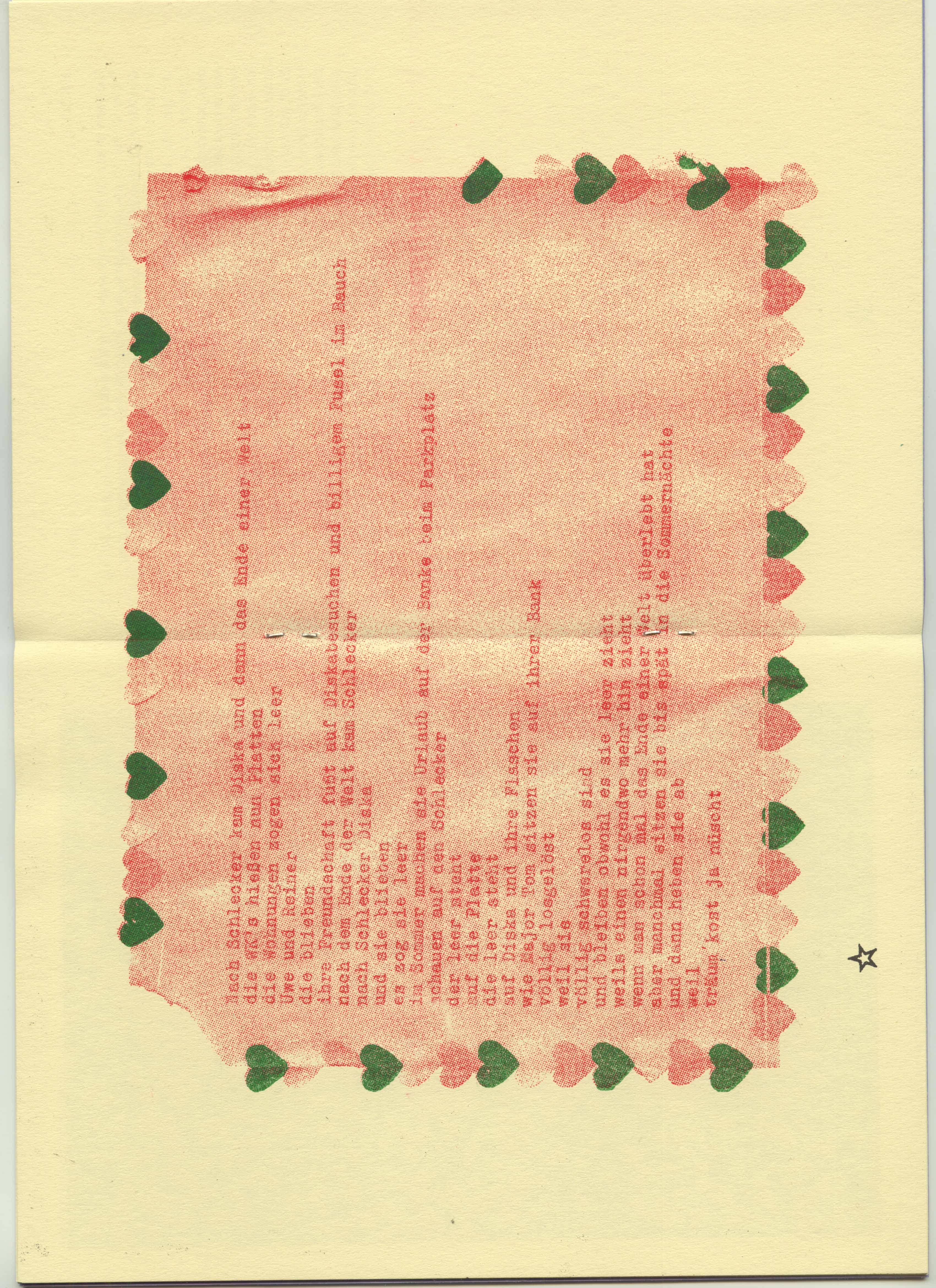 "ein entstandener rhythmus, ein austausch, briefe die verbindend reisen. ein rhythmus aus texten, zeichnungen und fotografien, weil sich manchmal zwei orte komisch aehneln." (niederschriften)